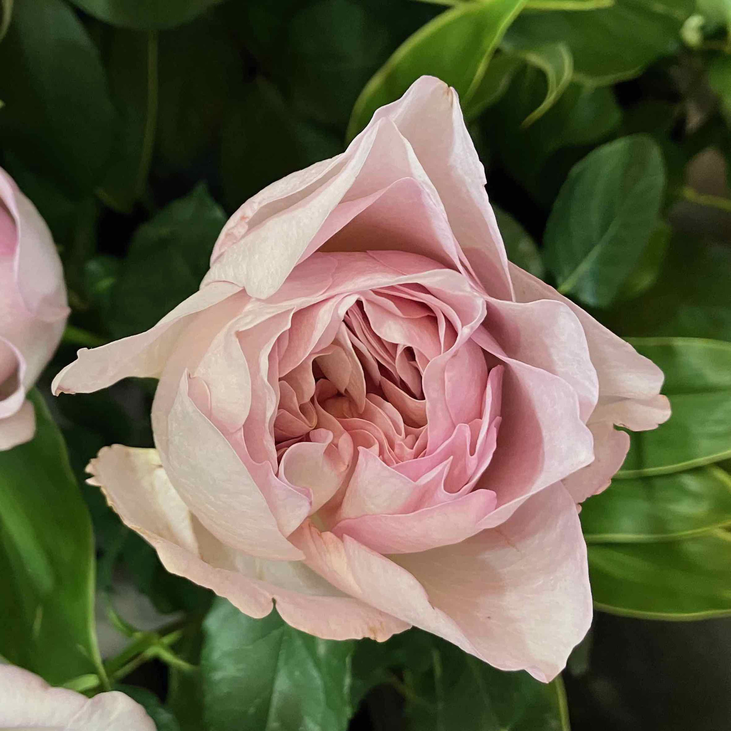 柔らかく上品なピンク色。コロコロ丸い花びらが大きく開く。ボリュームあり。