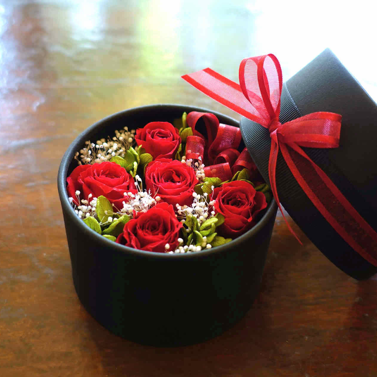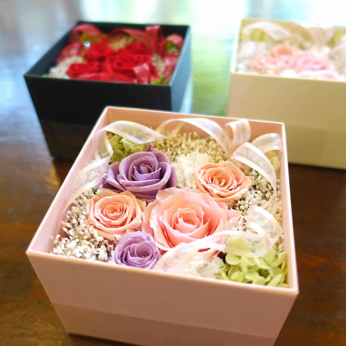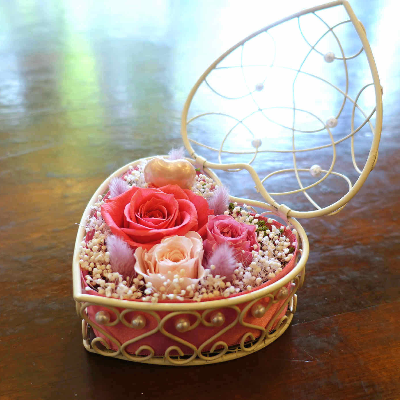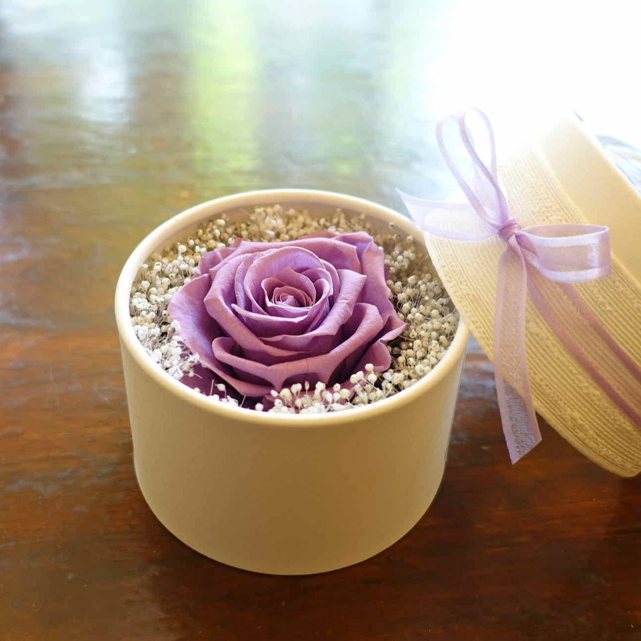 お花の水分を抜き、特殊加工してある商品。環境に左右されないので、お手入れいらず。長期間お楽しみ頂けます。