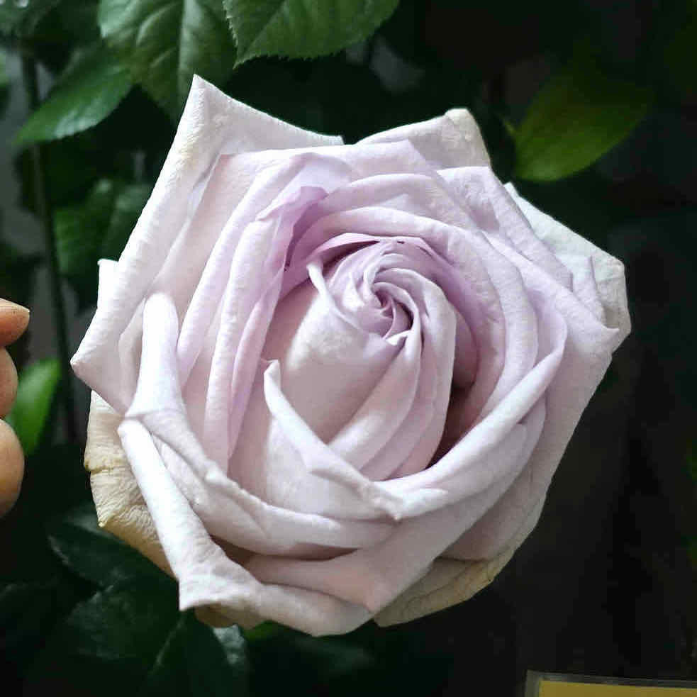 ラベンダーがかったシルバー系パープル。シックで上品な雰囲気でありながら、つぼみの時点でこぶし大の巨大輪は、存在感抜群。