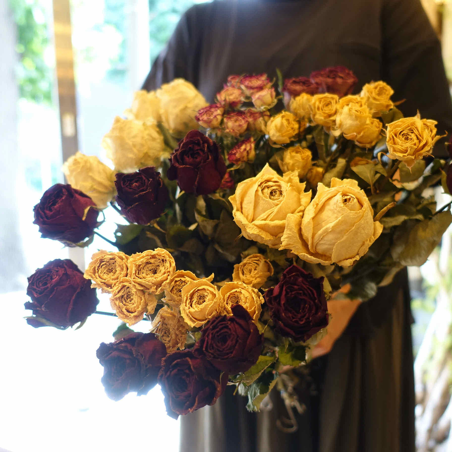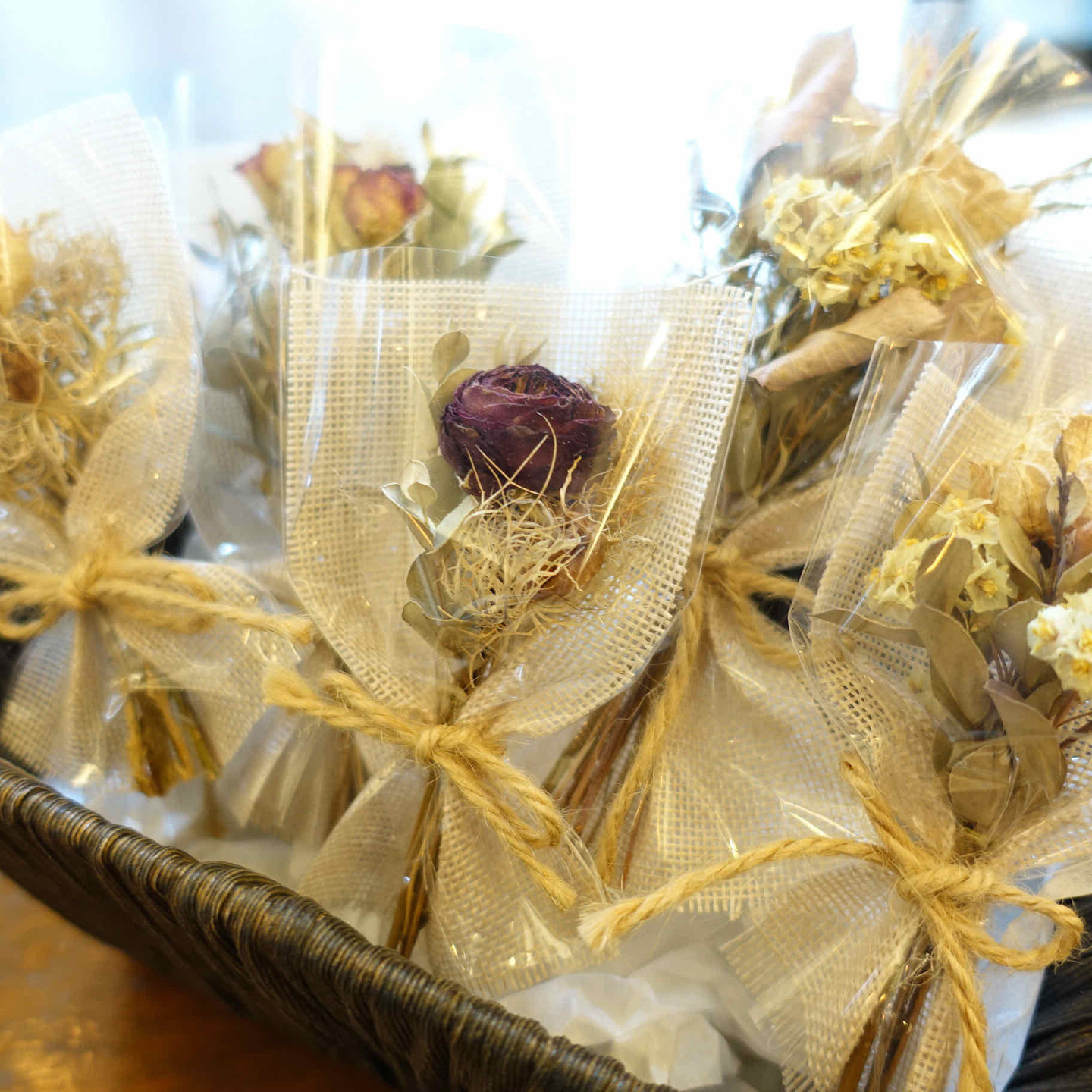 店内にて加工されたドライフラワーです。色の変化・風合いを長期間お楽しみ頂けます。