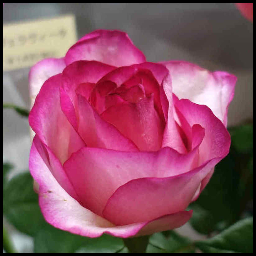 濃いピンクと白のコントラスト。トゲも無く細い姿でありながらカッチリとした作り。しっかりした巻きが特徴的。