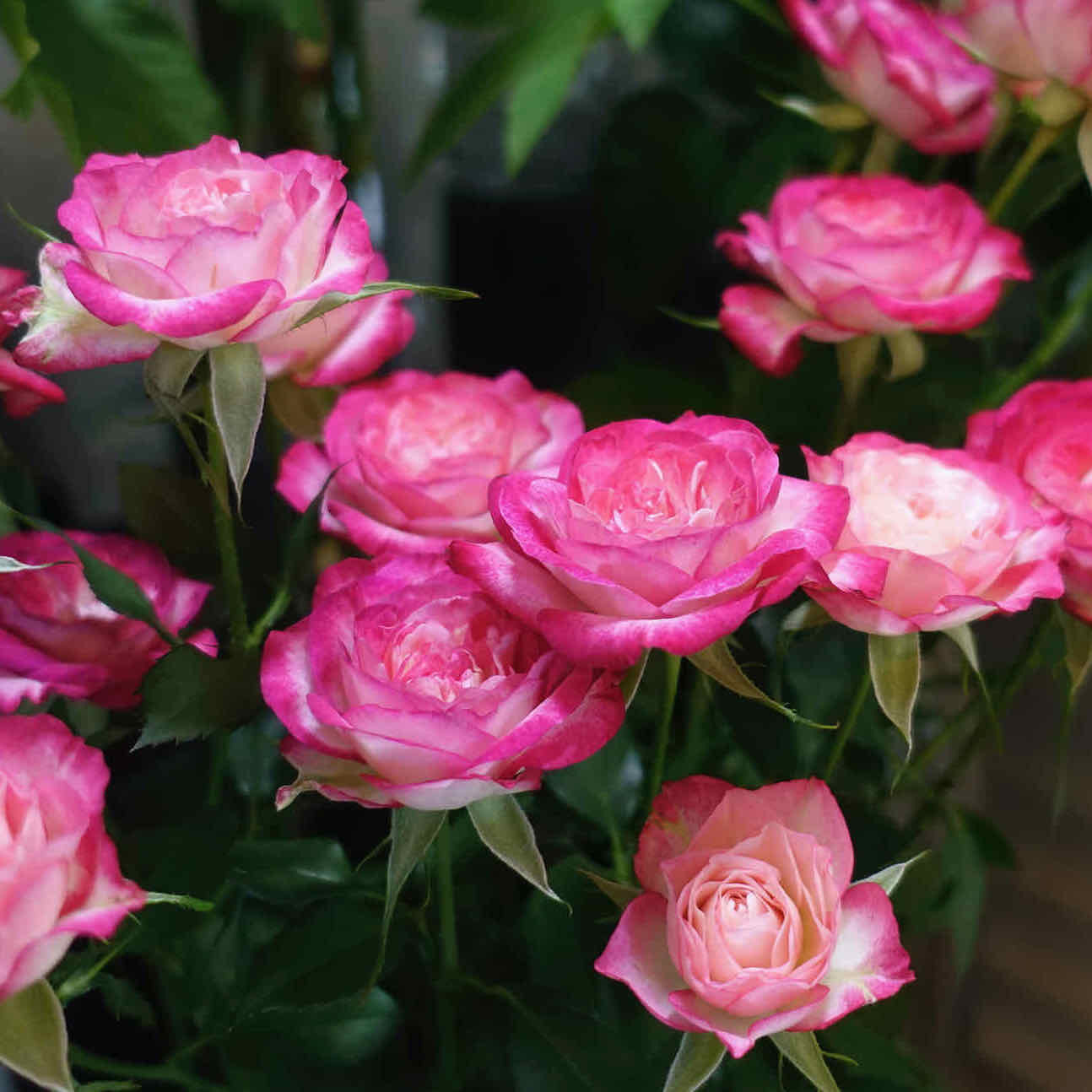 つぼみは濃いピンク。咲き進むにつれ、ホワイト×ピンクのミックスカラーに変化。2022年新品種。