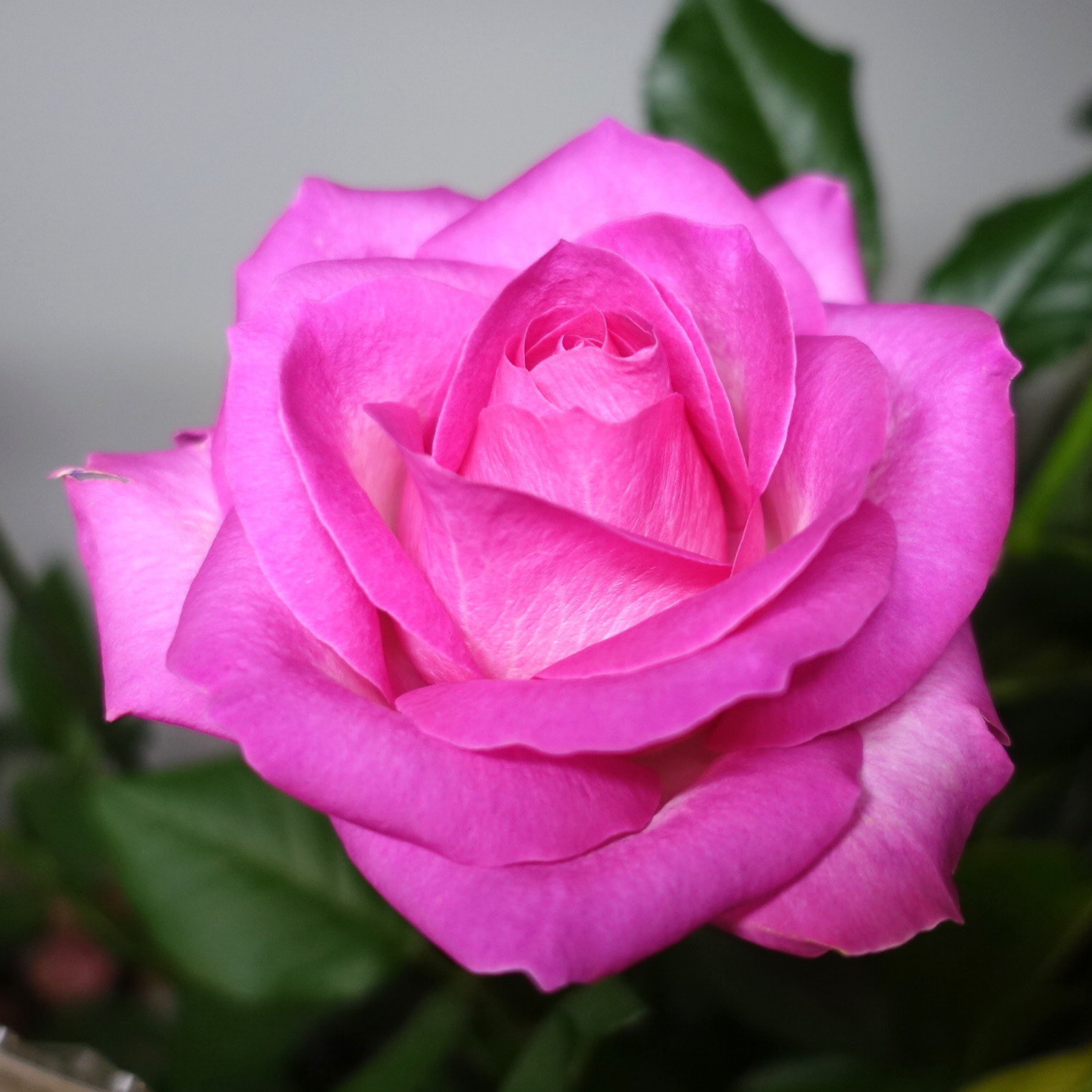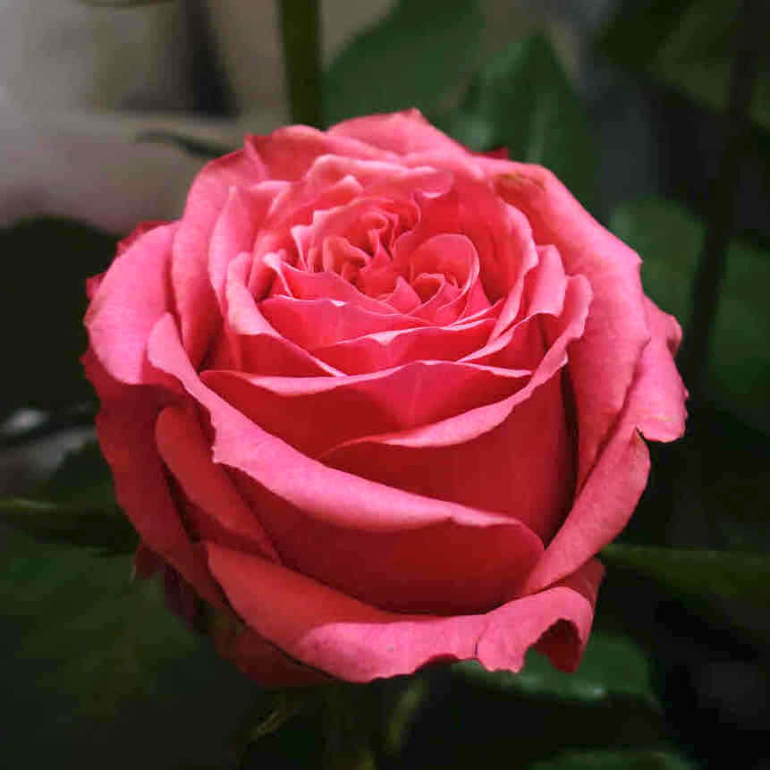 鮮やかな濃いピンク色。背の高い立派な花びらは、開花が進むにつれ、明るいミディアムピンクに変化する。ティー系の優しい香りあり。
