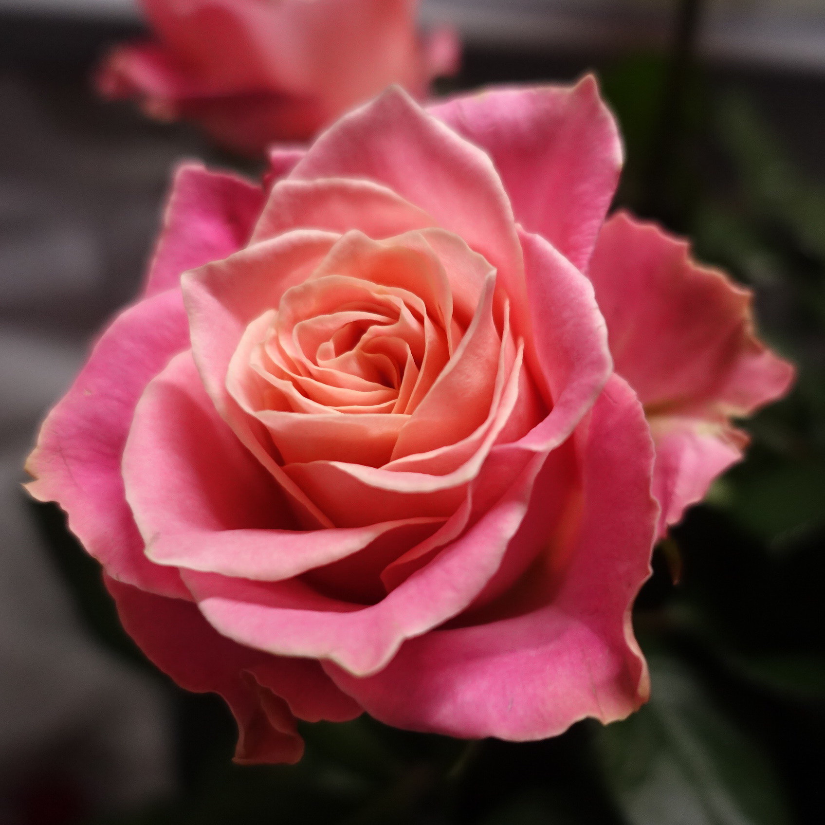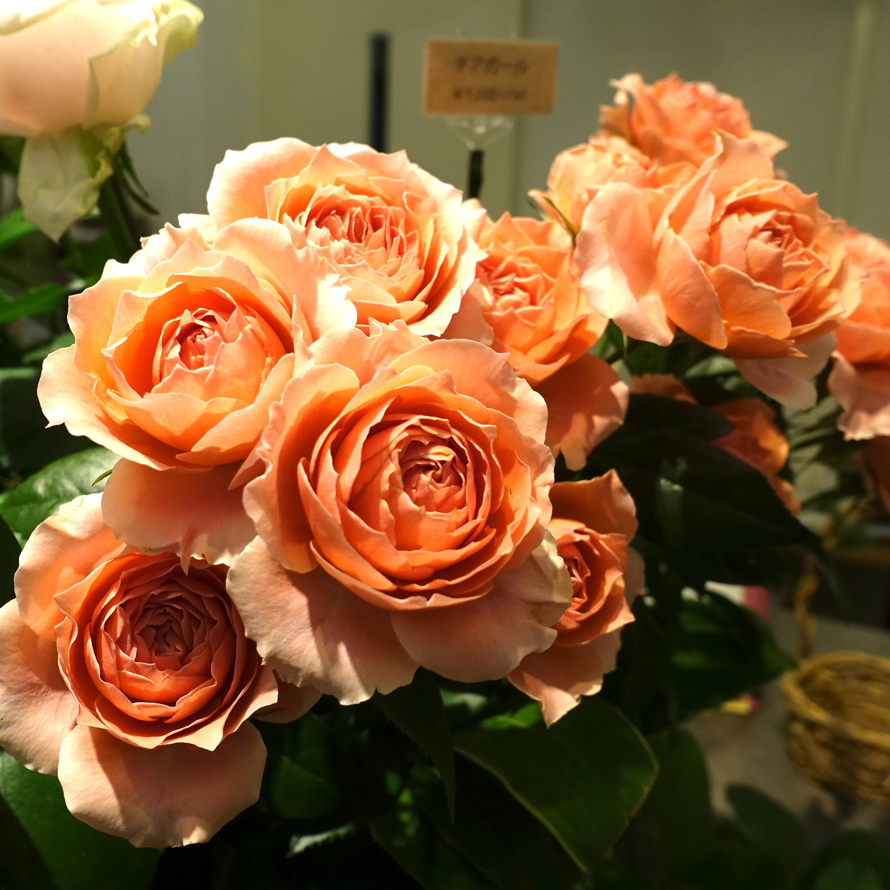 オレンジとピンクのツートンカラー。丸みのあるアンティーク調の花びらは繊細かつ華やかな雰囲気。