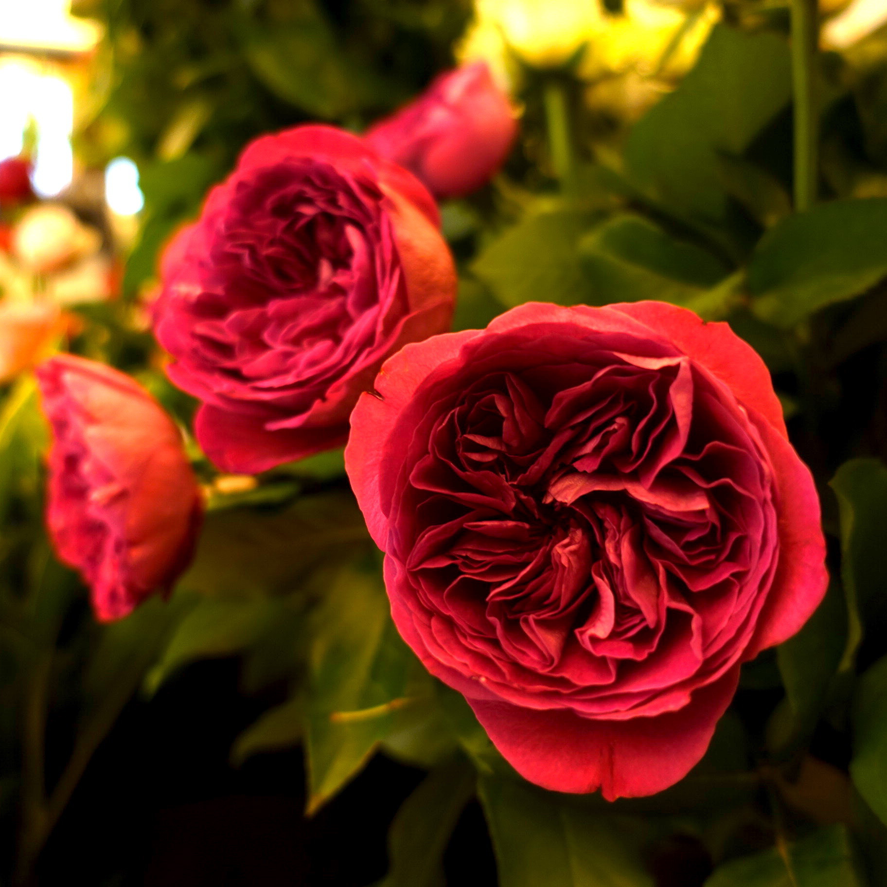 つぼみは鮮やかなピンク色、先進むにつれて花色は深みを増し、丸く咲く。
