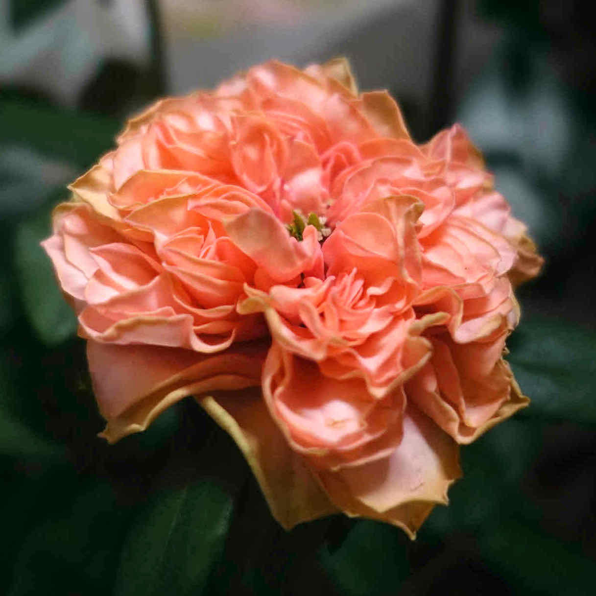 ややくすんだ感じの大人サーモンピンク色。コロンと丸い花びらは、咲き進むにつれて、驚きの変化を遂げる。