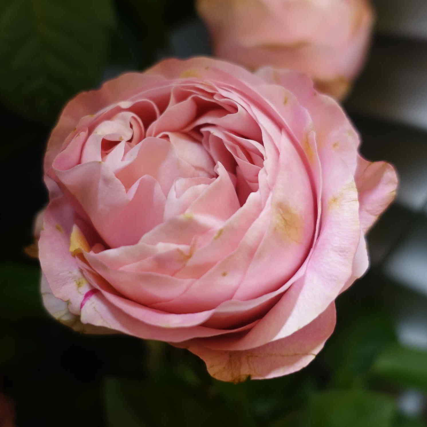 くすんだピンク色の花びらは開花するとブラウンベージュ系の色に変化。ふんわりとしたクラシカルな花形。フルーティーな甘い香りあり。