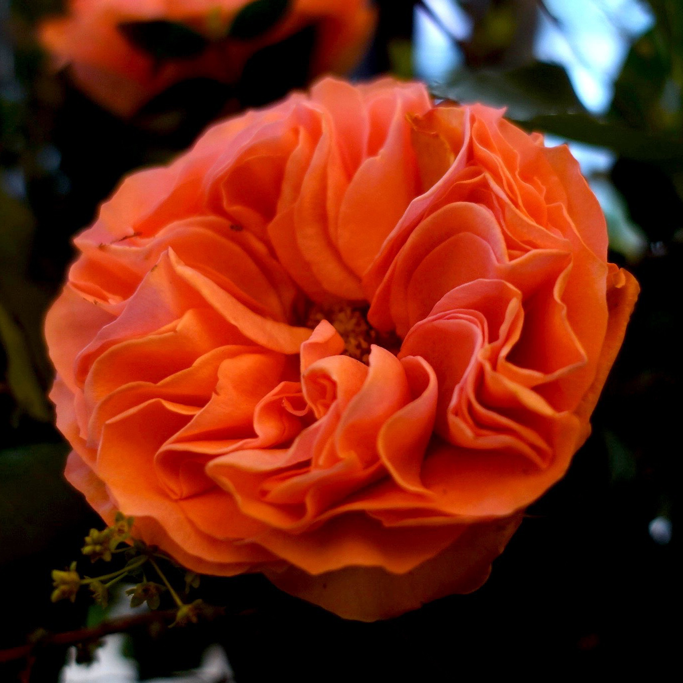 花びらの端がフリルがかった切れ込みが入る、シャクヤクのような花姿。強い香りあり。