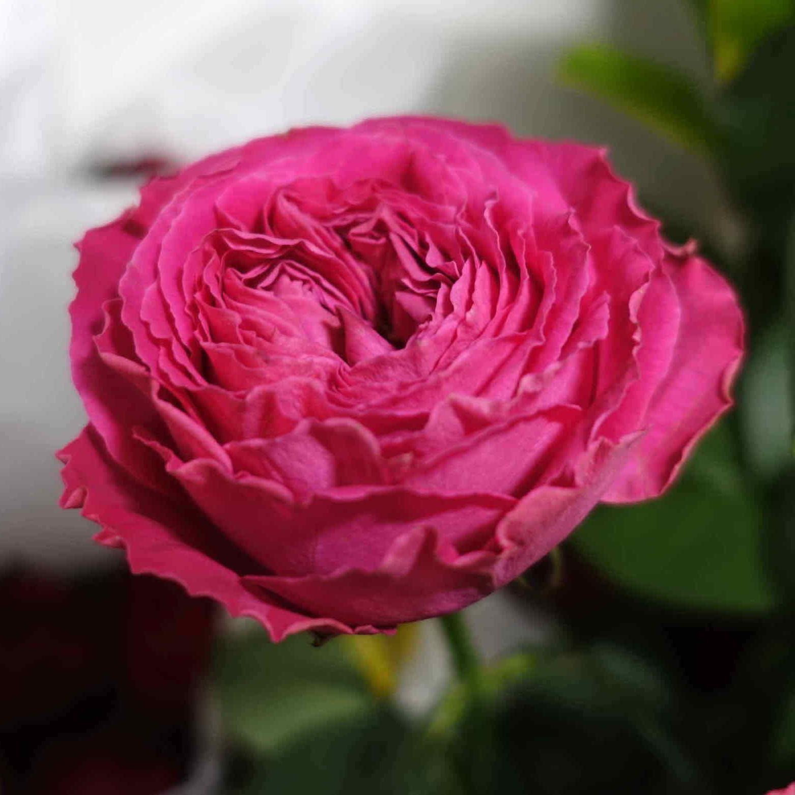 巻きの多いディープピンク。内側に向かってゆるくカーブしている花びらがキュート。ほのかな香りあり。新品種の為、入手困難。