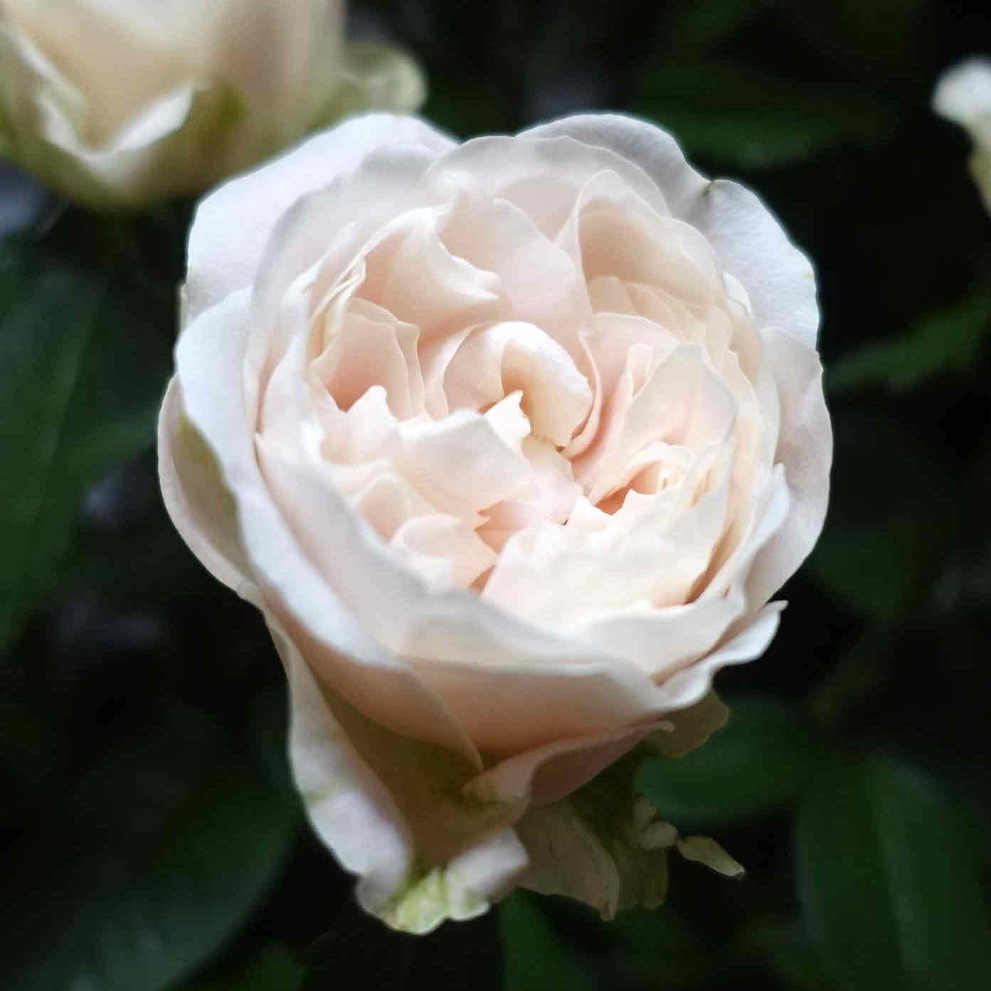 その名の通り小ぶりで可愛らしいミルクいちご色。フワッと丸く咲く。2022年品新種。