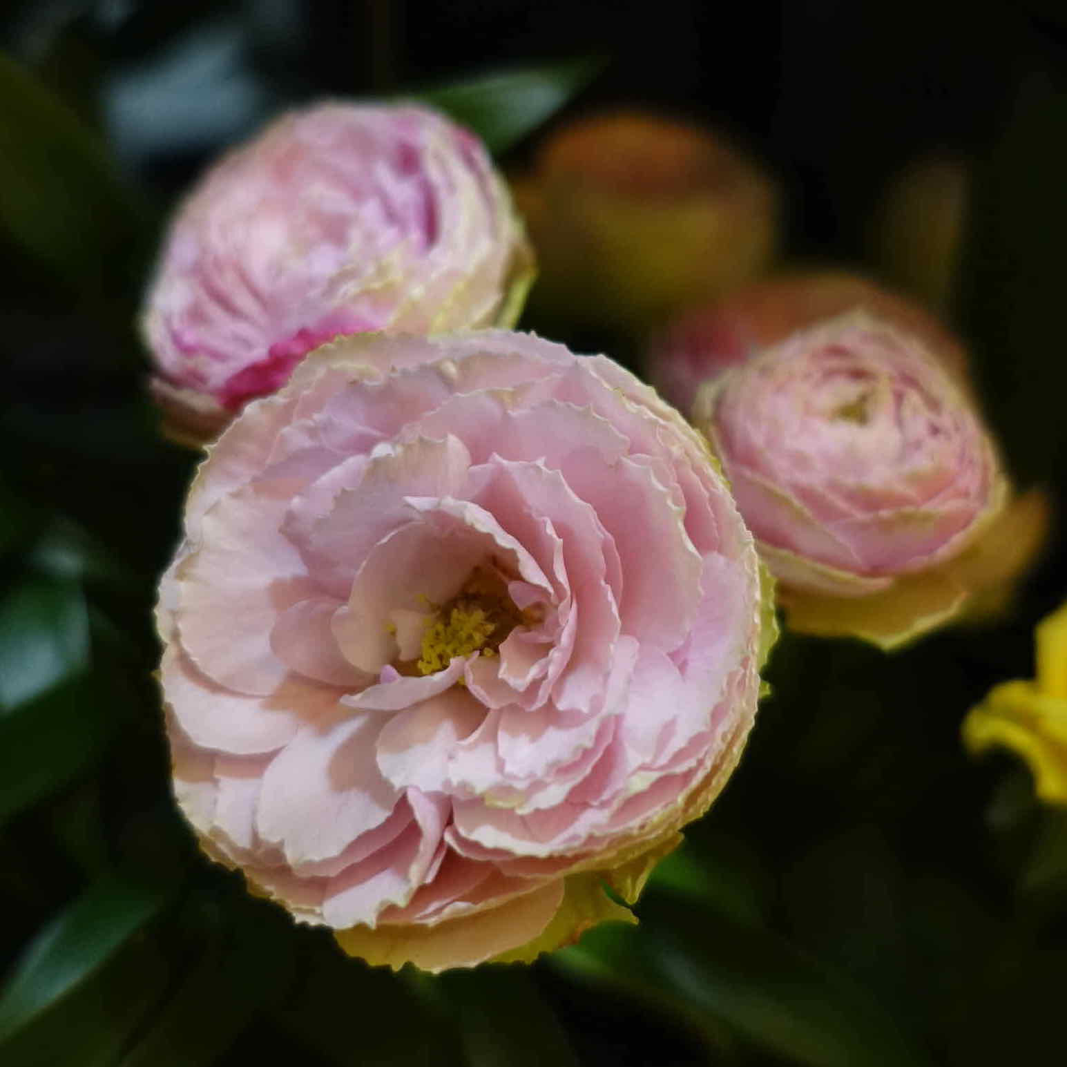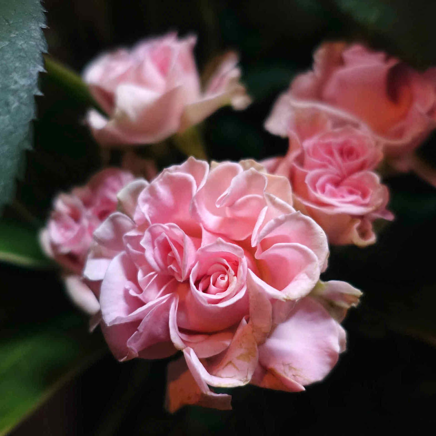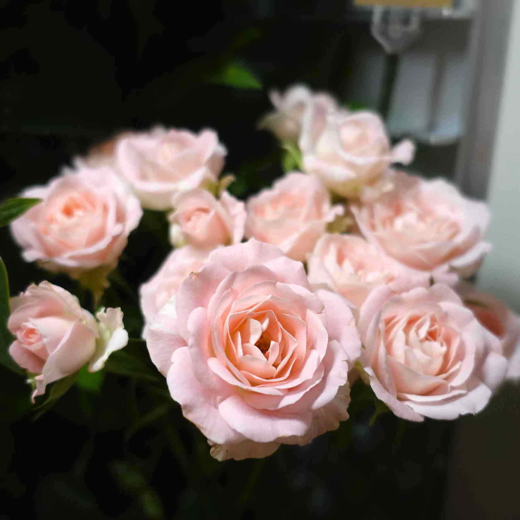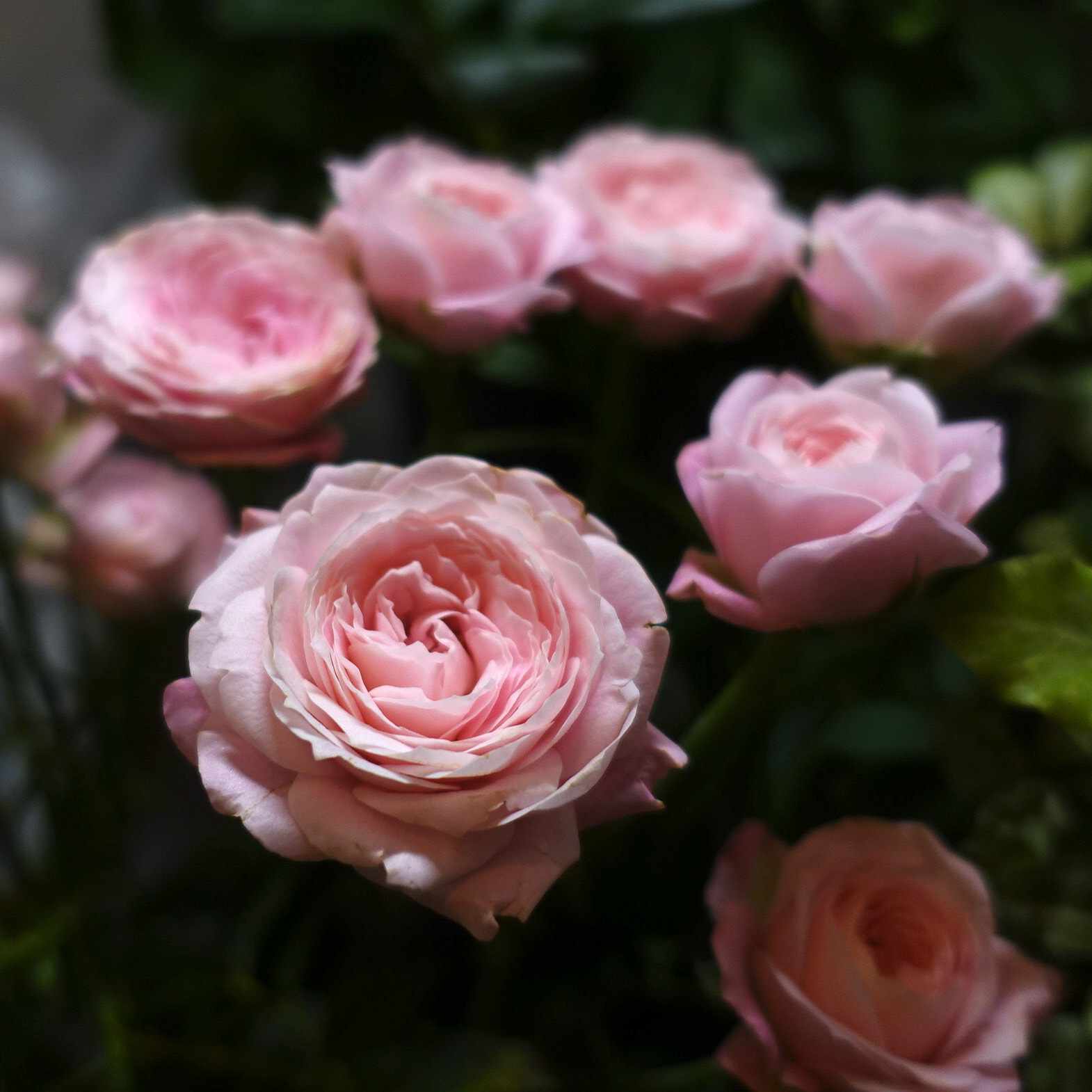 柔らかく上品なピンク色。コロコロ丸い花びらが大きく開く。ボリュームあり。