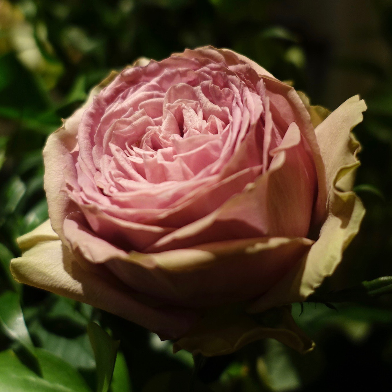ピンクがかったアンティークパープル。コロンと丸い花びらは濃淡の色のバランスが絶妙。