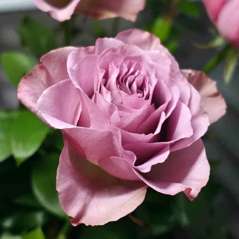 落ち着いたくすんだ紫色。クラシカルな雰囲気の花びらは、上品で爽やかなティー系の香りあり。2021年新品種。