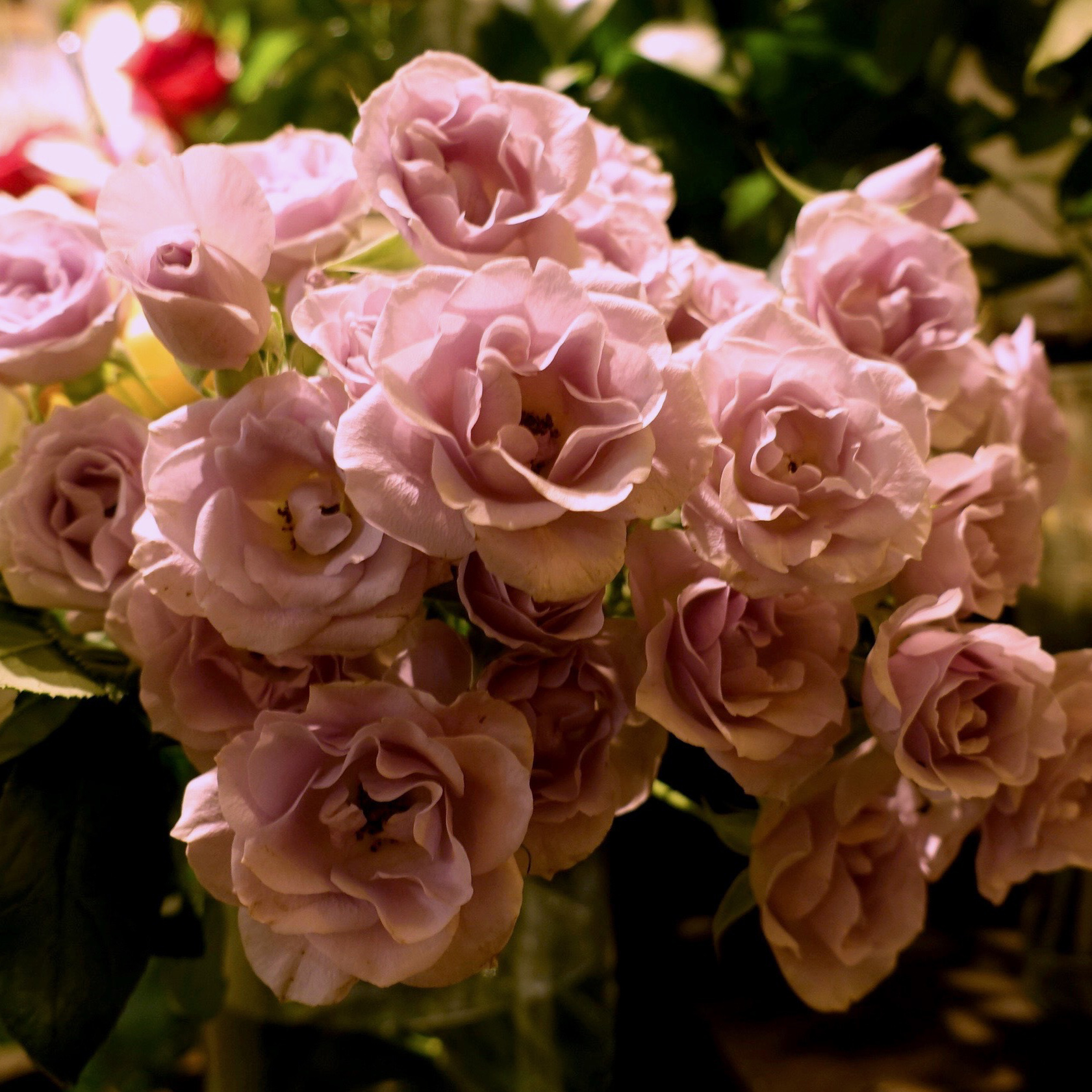 ピンク・ベージュ・パープルのアンティーク系ニュアンスカラー。フランス語で「未来」という意味を持つ。花もちも良い。