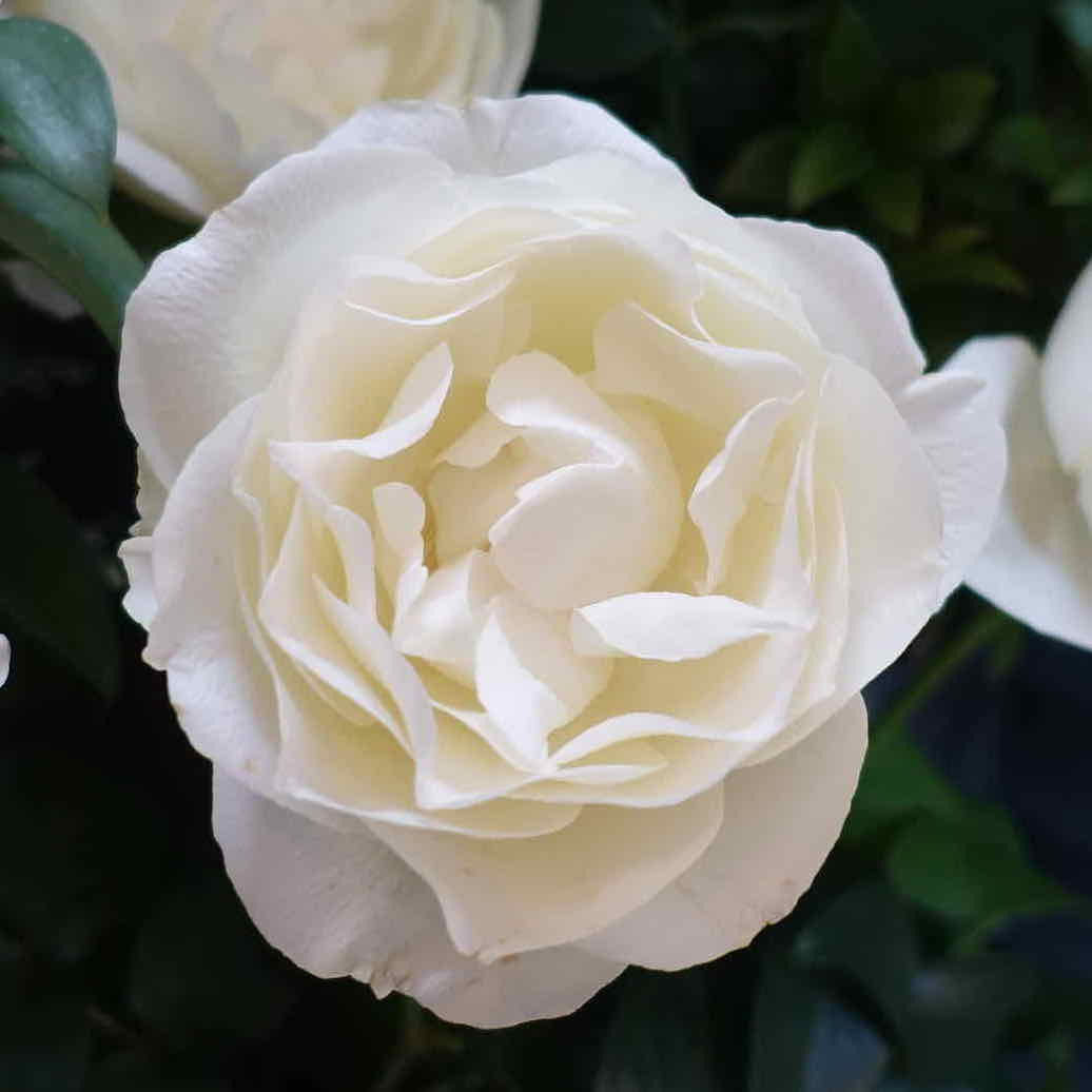ほんのり緑色を含む爽やかな王道白バラ。開くと手のひら大に。