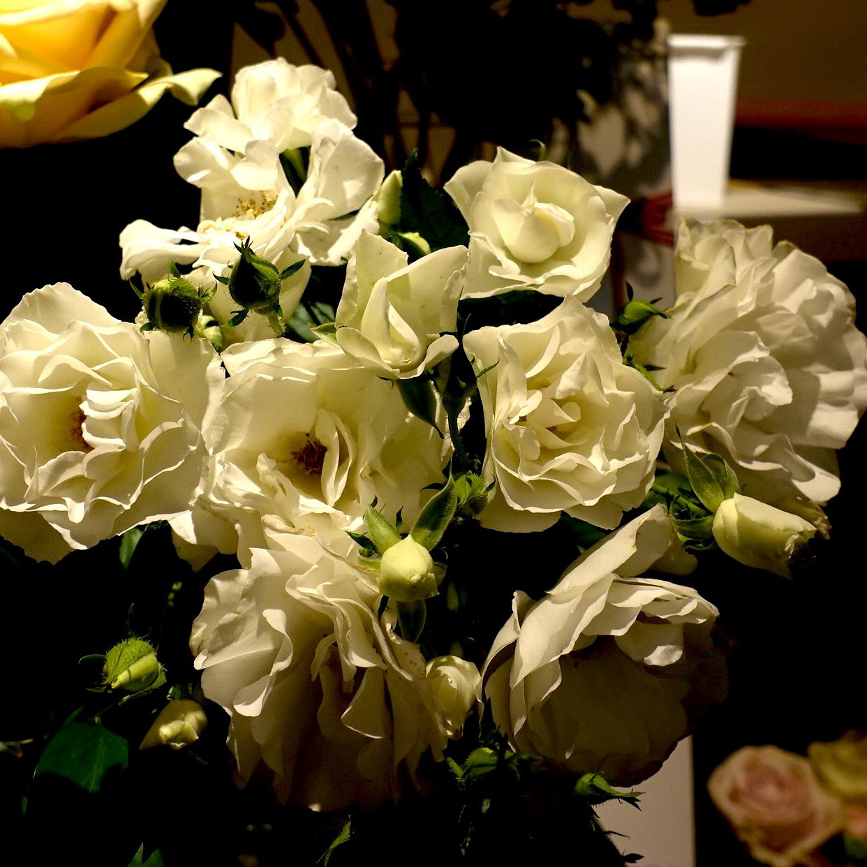 クリームがかった白色。上品な雰囲気の花びらは強い香りあり。「イヴピアッツェ」の枝変わり。
