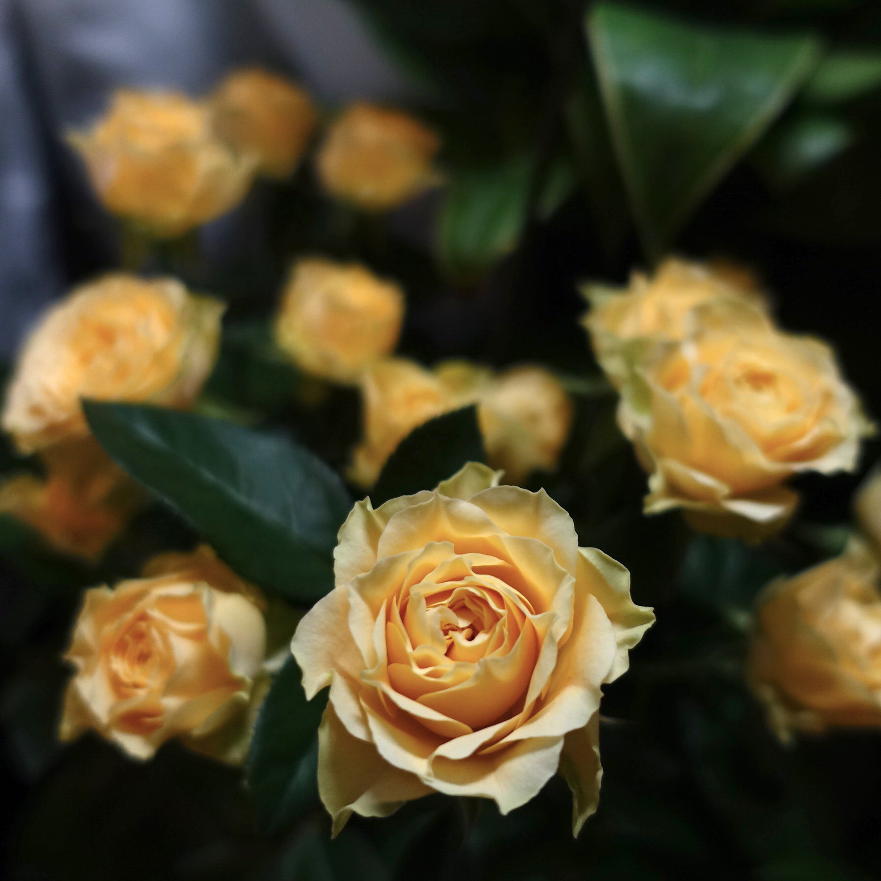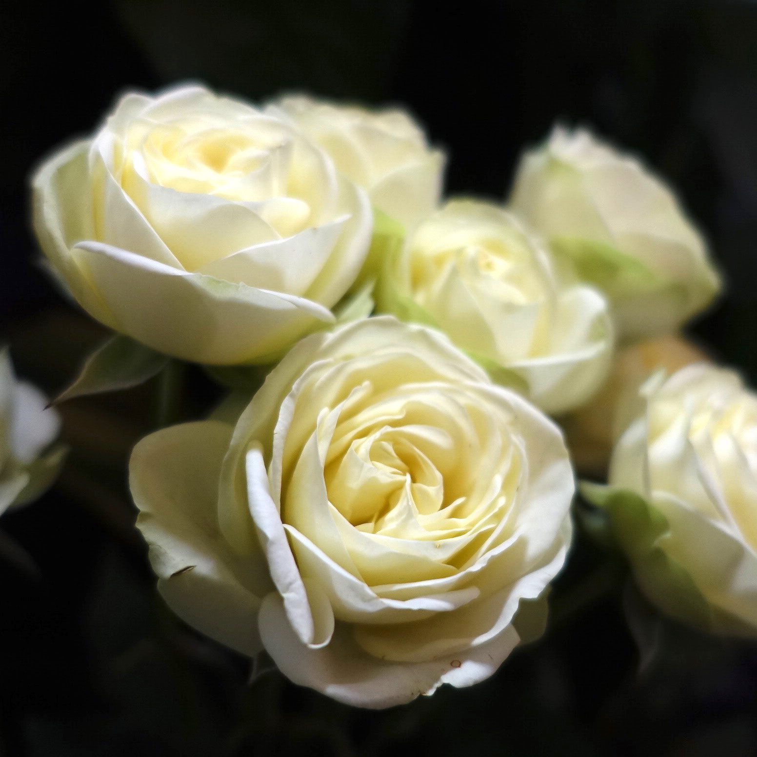 クリーム色にグリーンのグラデーション。コロンとしたかわいいスプレーバラ。