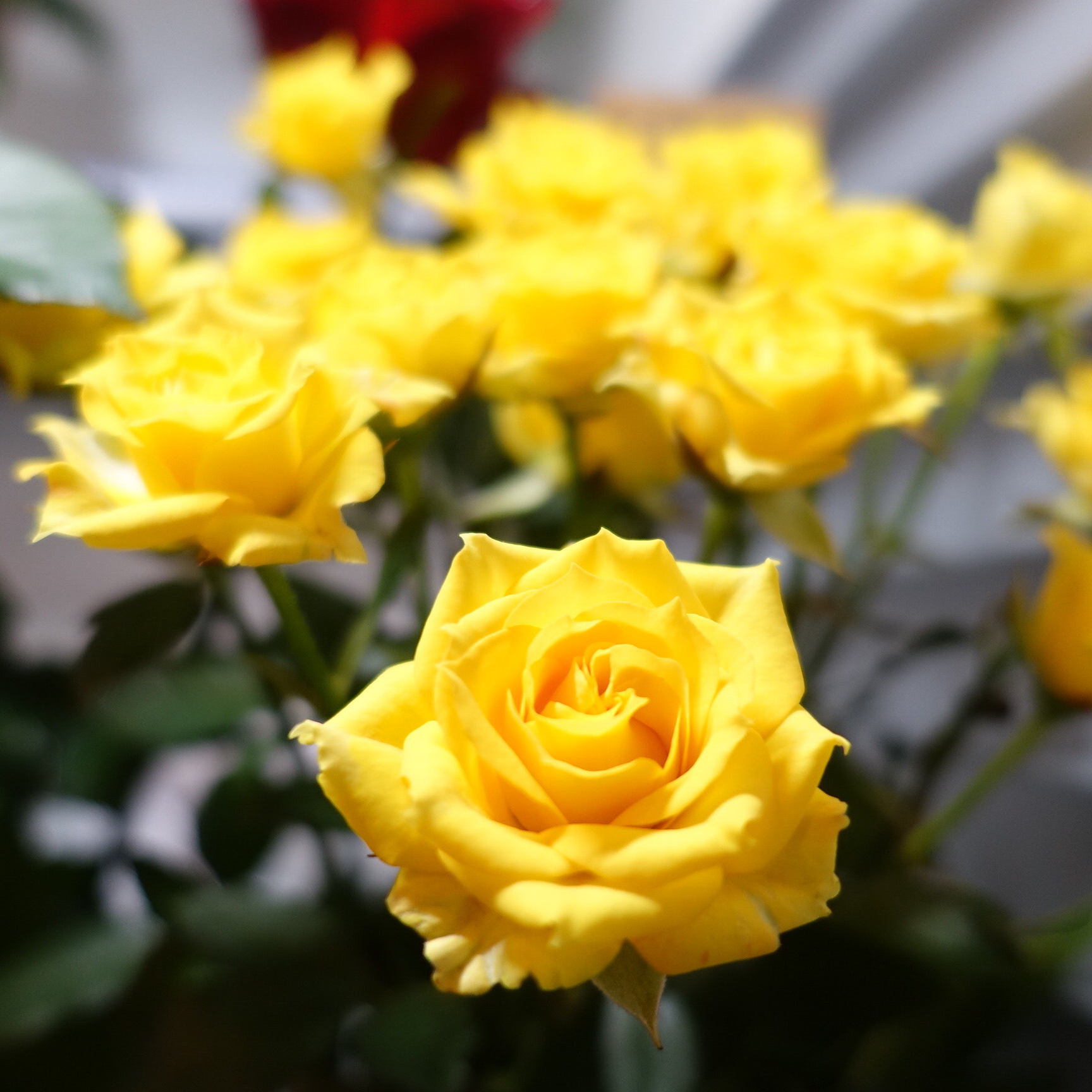 太陽のように濃くて鮮やかな黄色。豊かな花びらが明るく大きく咲き誇る。