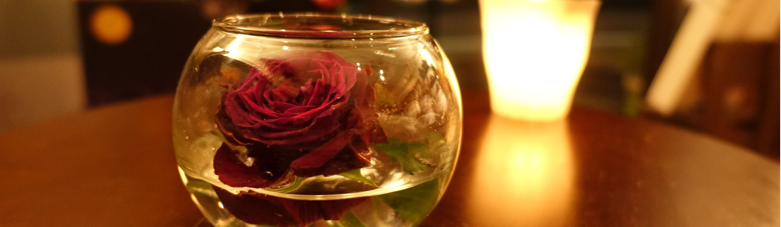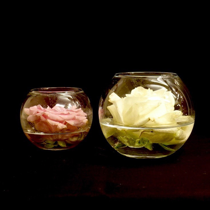 短かくなったバラを浮かべて楽しめる花器です。短かく切ったスプレーバラを活けても素敵です。